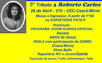 50 Fãs de Roberto Carlos em Fortaleza-CE estarão no "8º Tributo ao Rei em Ceará-Mirim". Detalhes: http://www.jovemguardacm.blogspot.com/ Agora com atualização diária.
